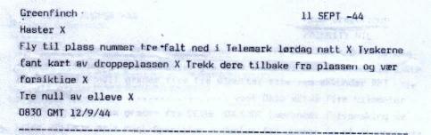 11 september mottok "Greenfinch" følgende telegram fra London :